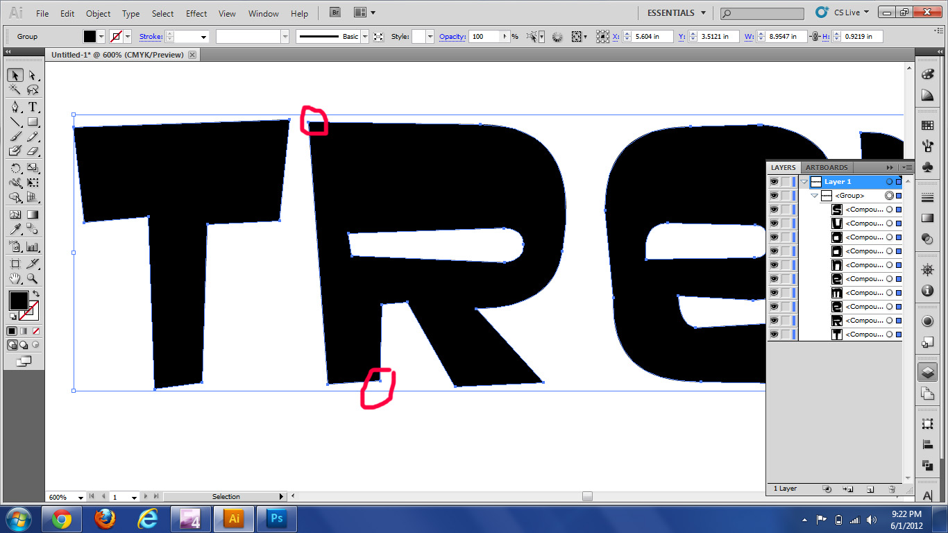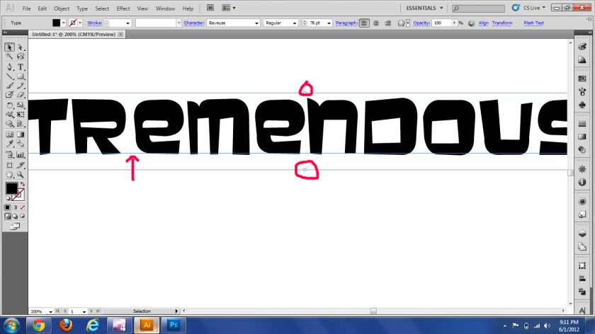 So, now you can save the file as a copy and send it to another computer, another person, or even the printer, and you will not have problems with the other computer not having the font file, there will be no font substitution. But there is another reason I like to convert the text to outlines, an that is to change the letters, make it thinner, fatter, elongate the steam, or unite 2 of them, etc… Oh! and don’t let me forget that you can fill each letter with gradients now that they are shapes, which is something you can’t do if they are still text. Play with it, experimenting is the most fun way to lear 😀