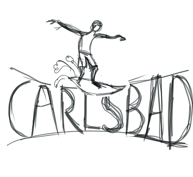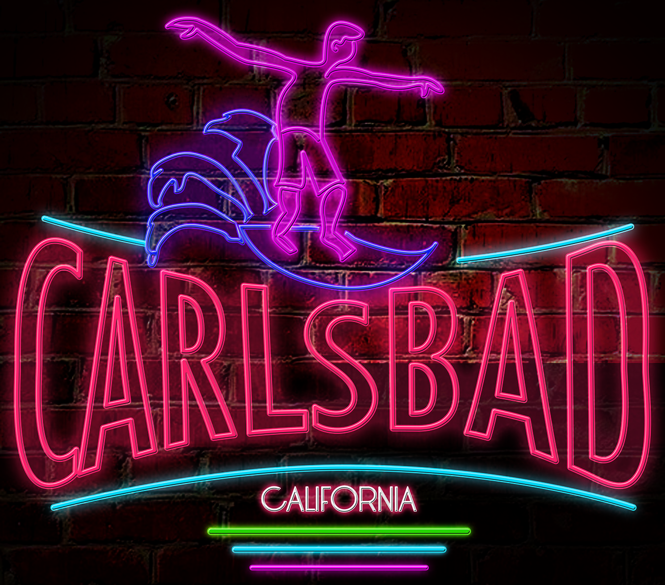 For this one I wanted to do a neon sign, Carlsbad has this famous statue of a surfer, called the kook, locals make fun of the statue because of the pose and he gets dressed (some call it vandalized) to support teams, or make some kind of political statement, etc. I wanted to include the kook in the neon sign.